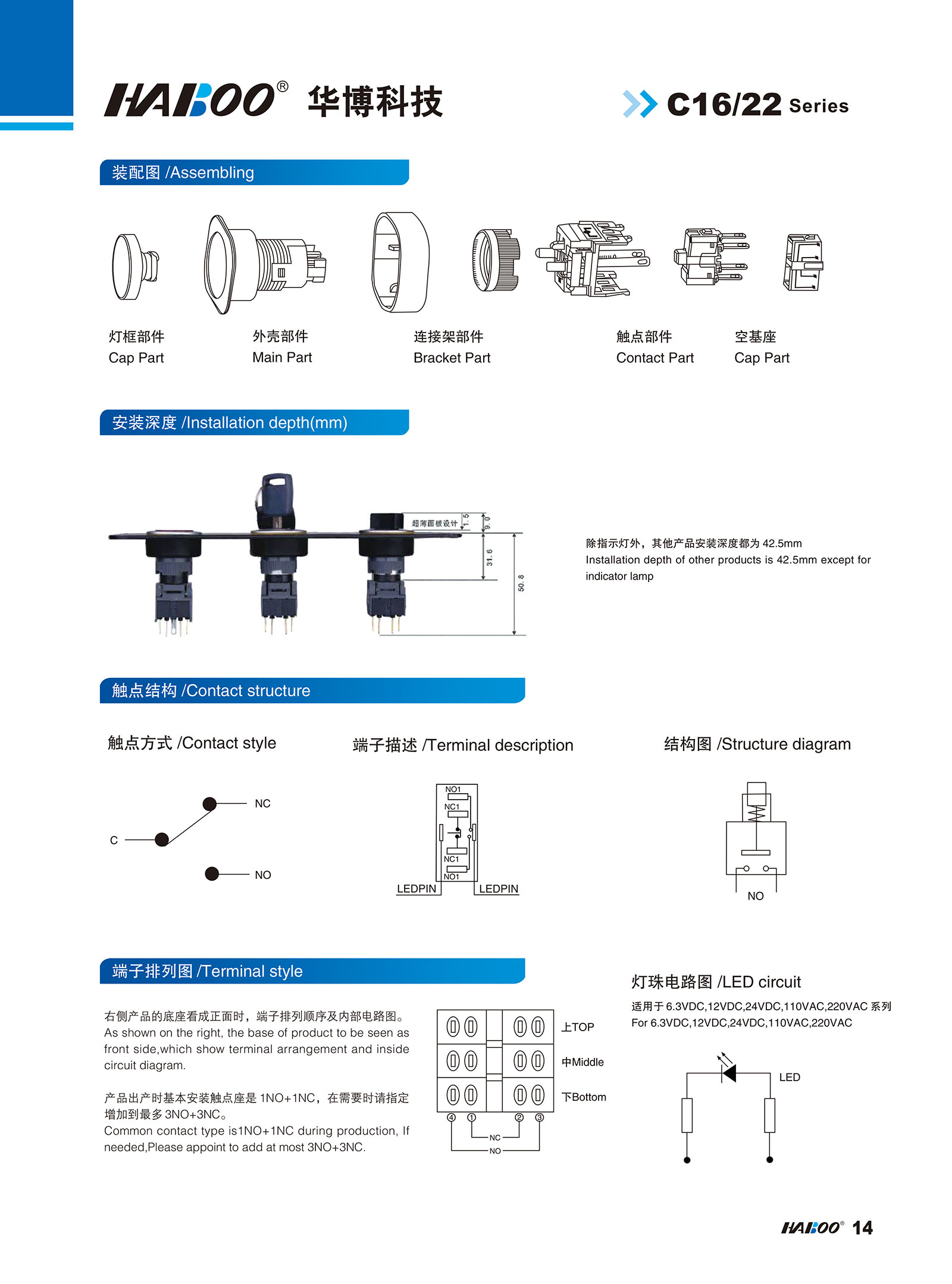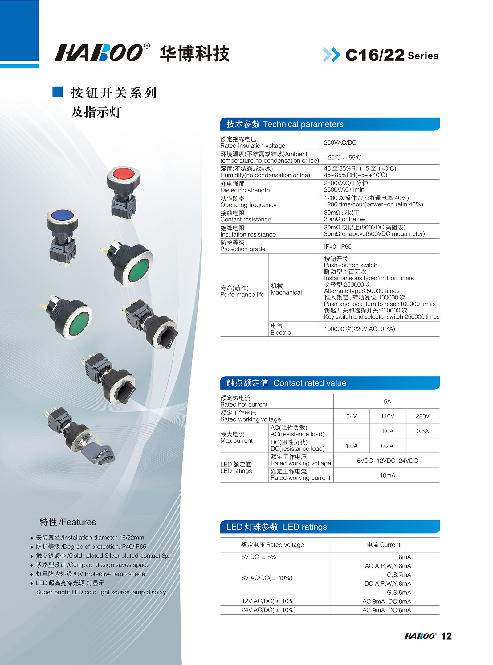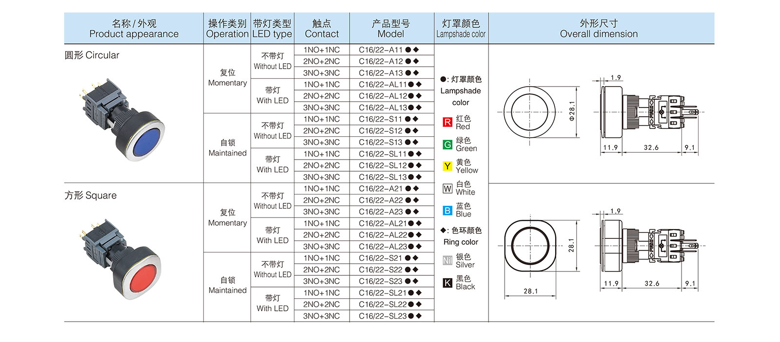 塑料按鈕開關 > 16MM > C16/22