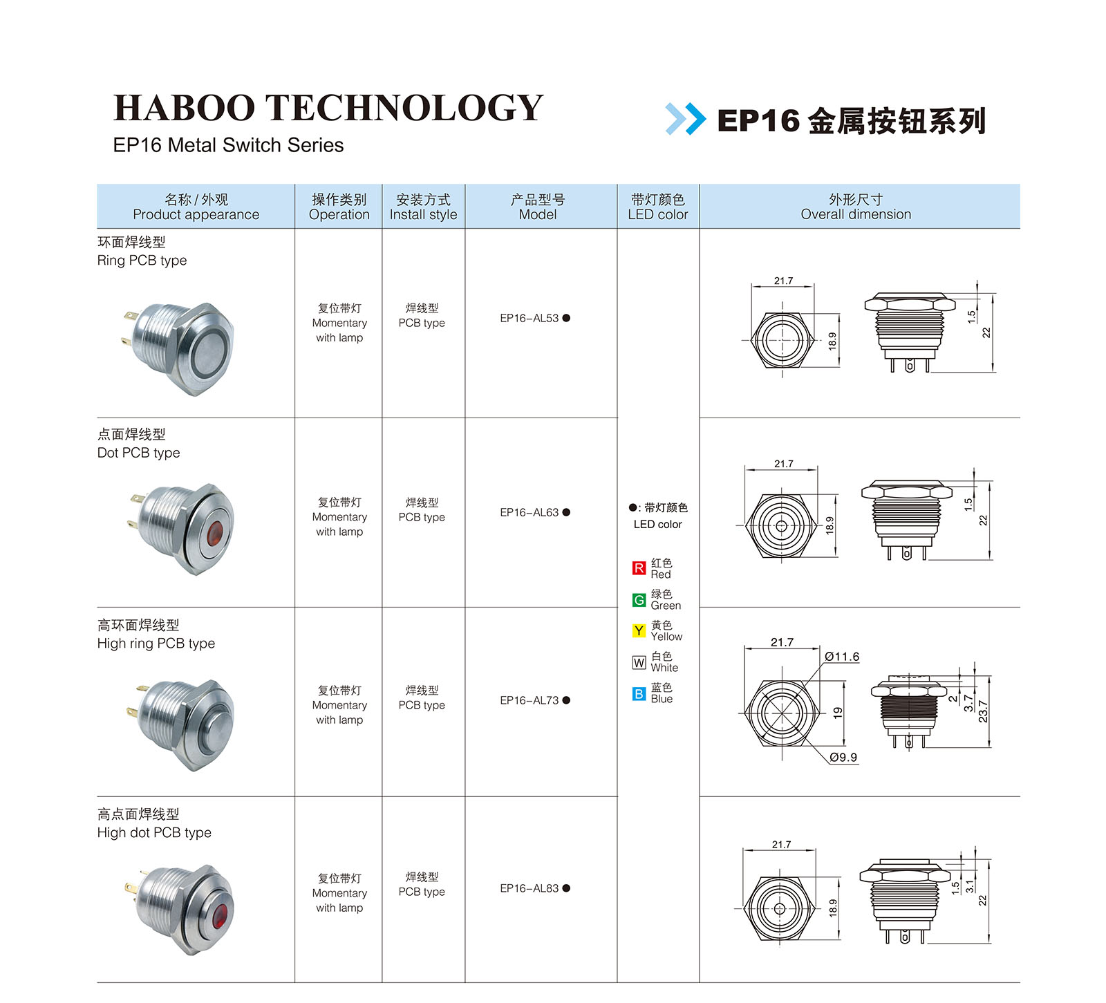 金屬按鈕開關 > 金屬按鈕開關 > 16MM > EP16